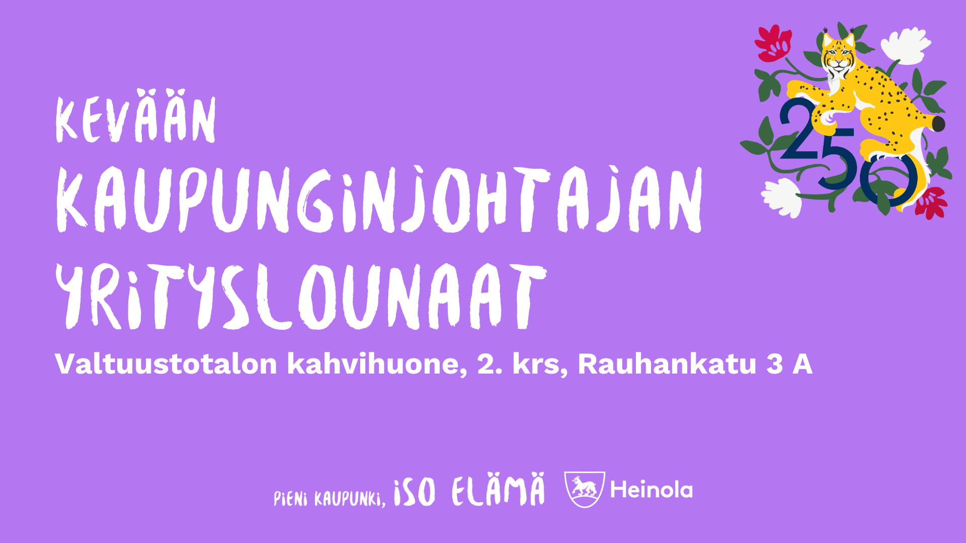 Kutsumme lounaalle heinolalaisia yrittäjiä vaihtamaan ajatuksia kaupunkimme elinvoimaisuudesta. Lounaalla kohtaat myös muita yrittäjiä!