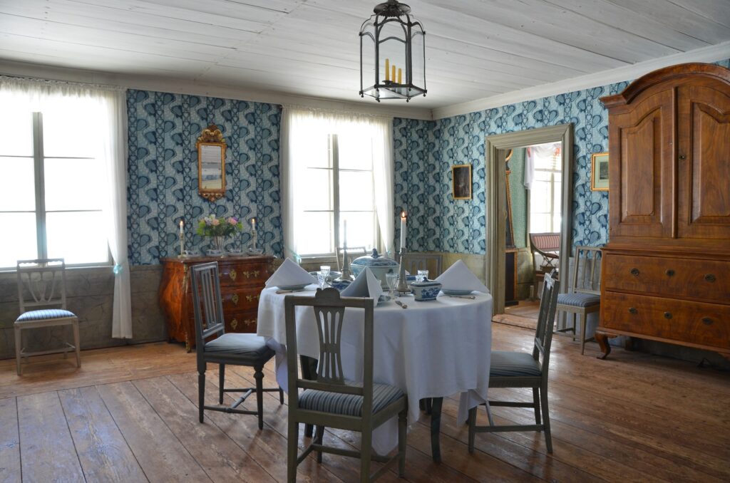 Sisällä kustavilaisen ajan huonekalut, tapetit ja käyttöesineet, ovet ja ikkunat kertovat maaherran ajan Heinolasta ja vievät kävijän ainutlaatuiseen tunnelmaan.