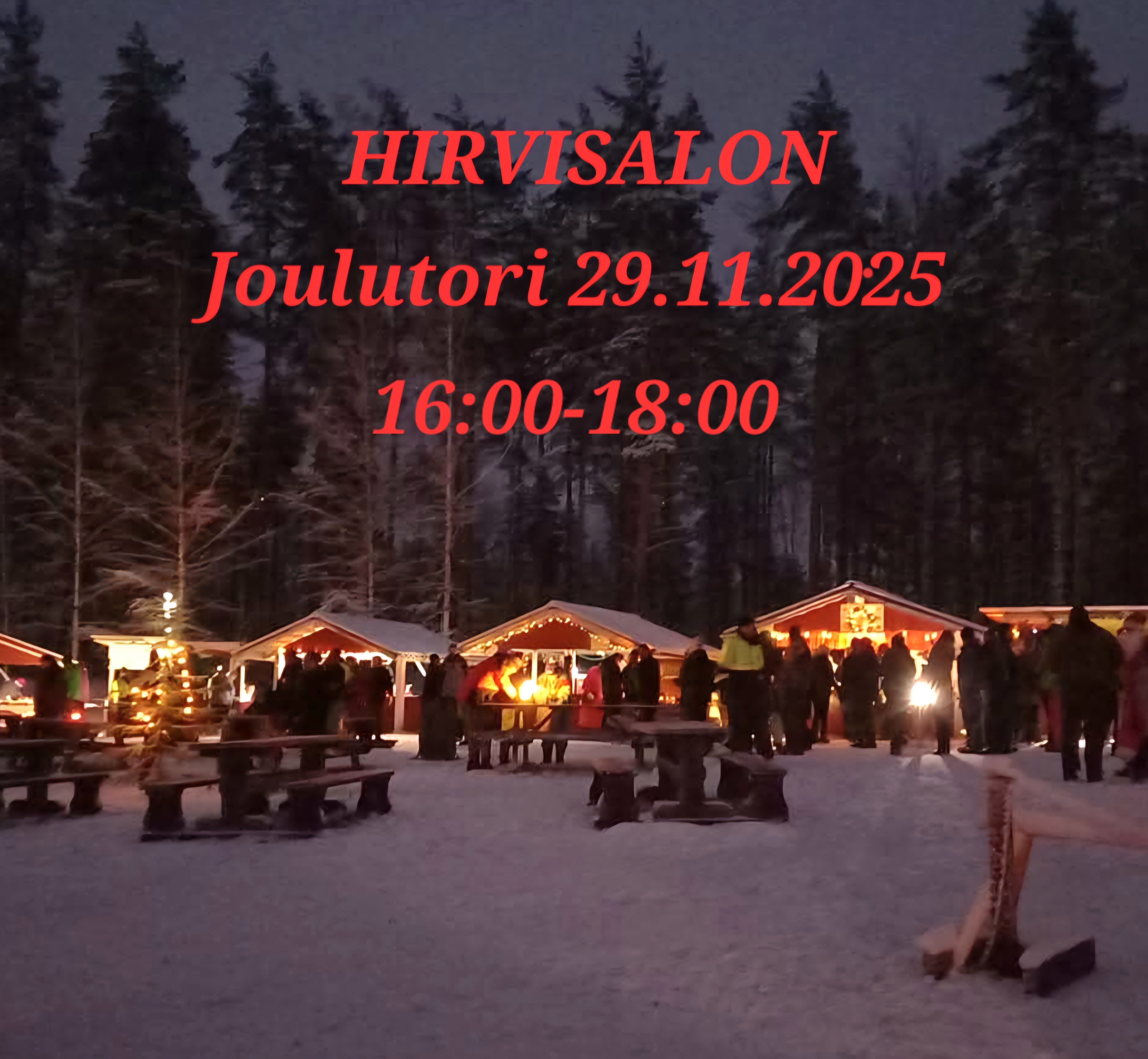 Hirvisalon tunnelmallinen joulutori 29.11.2025 kello 16:00 – 18:00 Muikkusalmentie 970 TERVETULOA