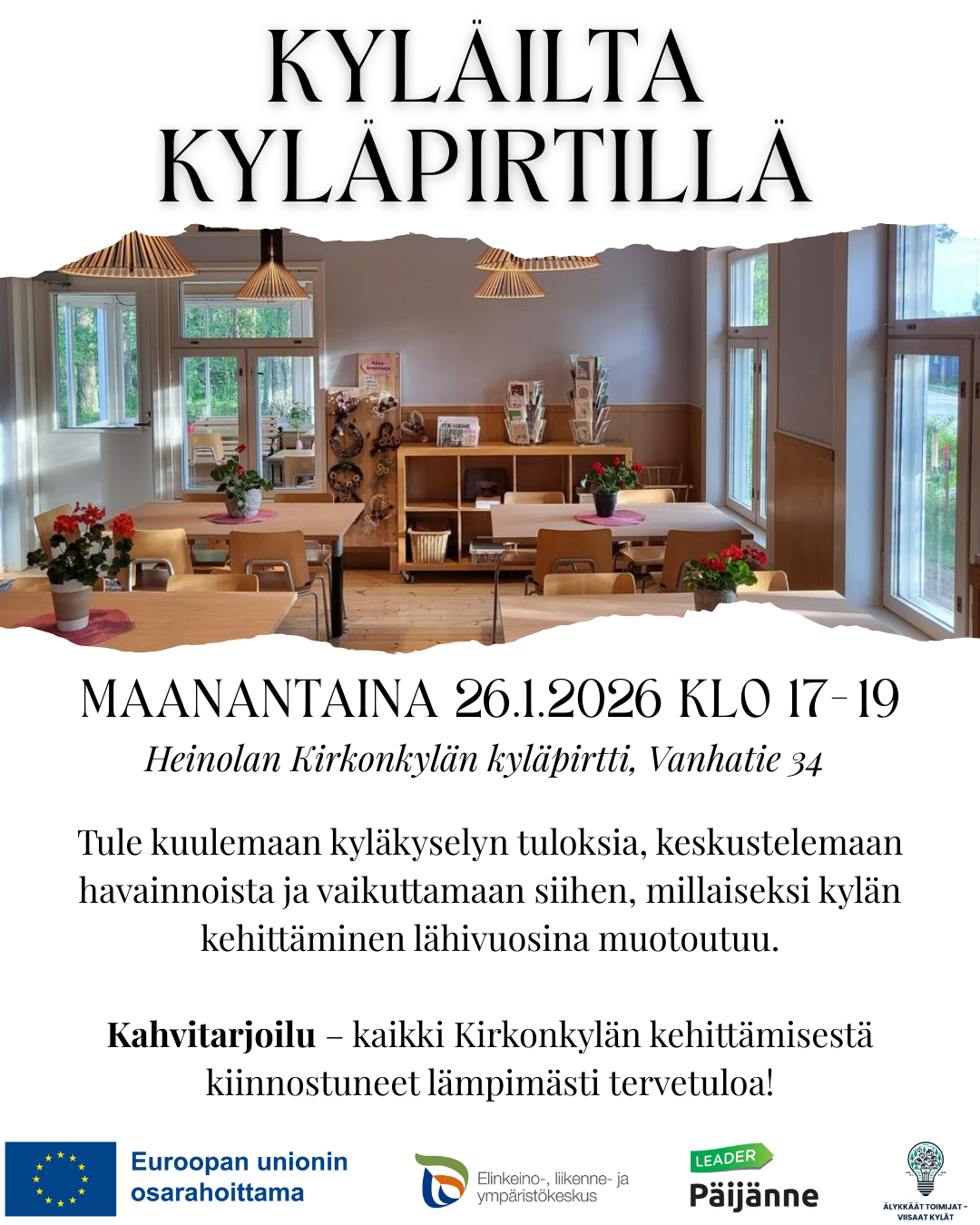 Kaikki kirkonkylän kehittämisestä kiinnostuneet lämpimästi tervetuloa!
