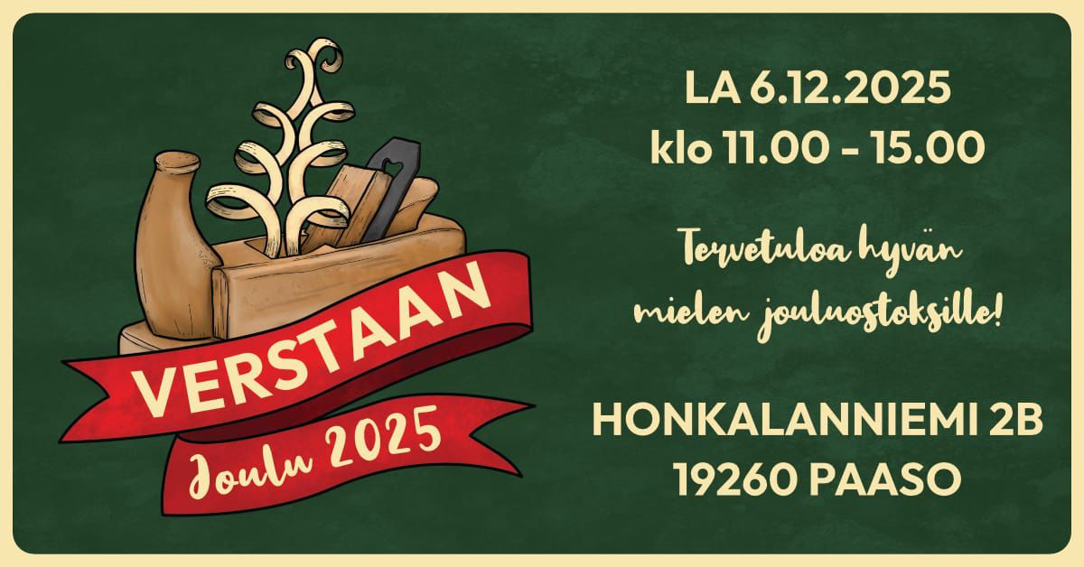 Verstaan joulu 2025 6.12.2025 11.00 – 15.00 Juhlat Perinteisestä Verstaan joulusta hyvän mielen jouluostokset! Jaa Facebook LinkedIn X Link Linkki kopioitu leikepöydälle Tapahtuman hinta Vapaa pääsy