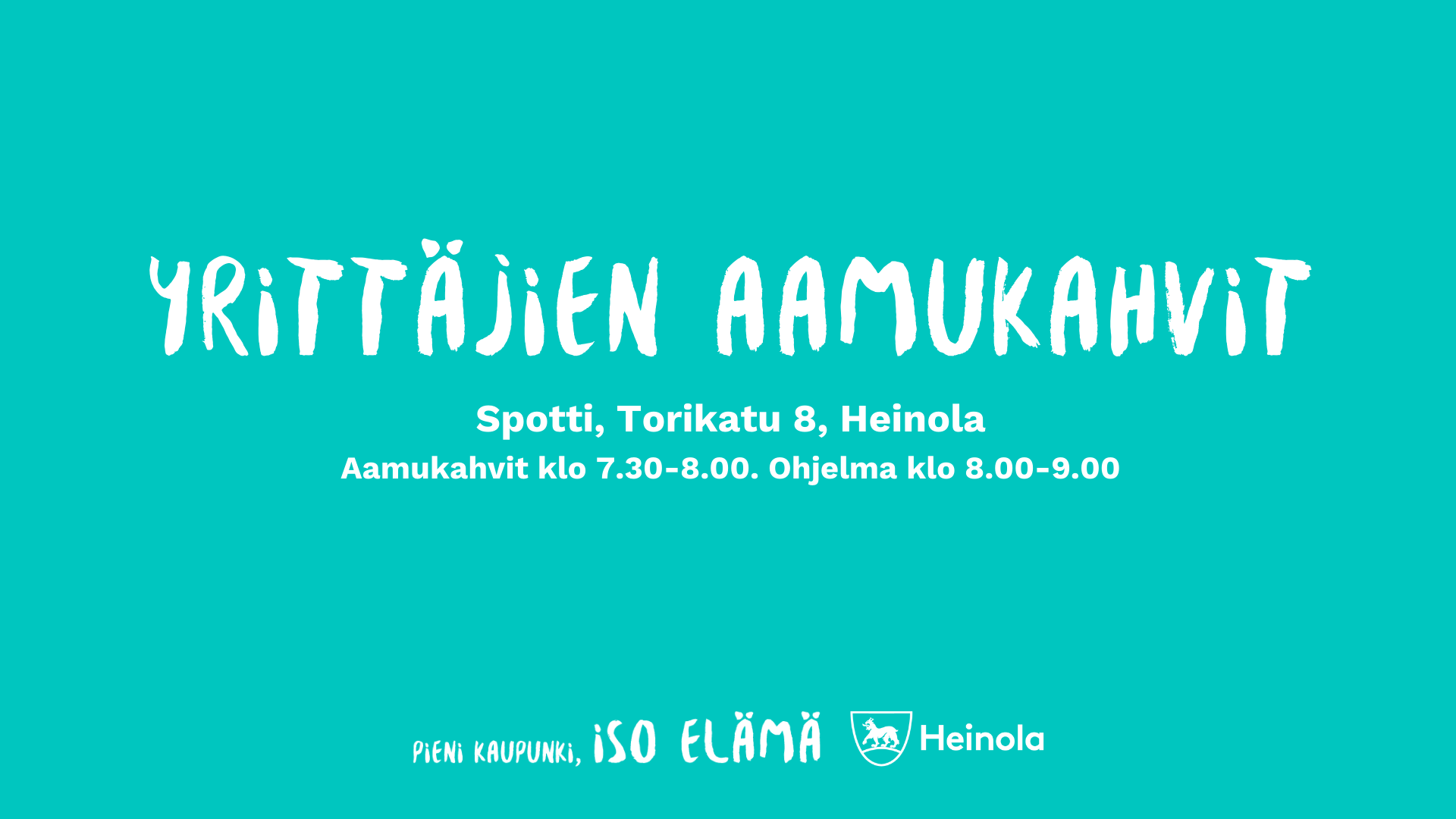 Tervetuloa Heinolan elinkeinopalveluiden järjestämille aamukahveille to 5.3.2026 Spottiin (Torikatu 8). Yrittäjien aamukahveilla käsitellään vaihtuvin aihein ajankohtaisia asioita.